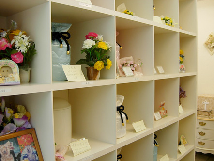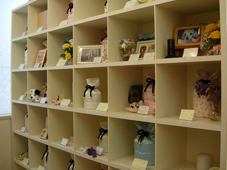 納骨堂にはスイートピー(小型ペット対応)、カトレア(小型ペット対応)、カサブランカ(大型ペット対応)と3種の霊座があり、1つの霊座を自由に使って頂くことが出来ます。スイートピーは小鳥からシーズ・豆柴くらいまで、カトレアはゆったりとしたスペースで、カサブランカは大型までで、とびら付き。納骨堂内は、営業時間内ならいつでもお参りをして頂くことが出来ます。